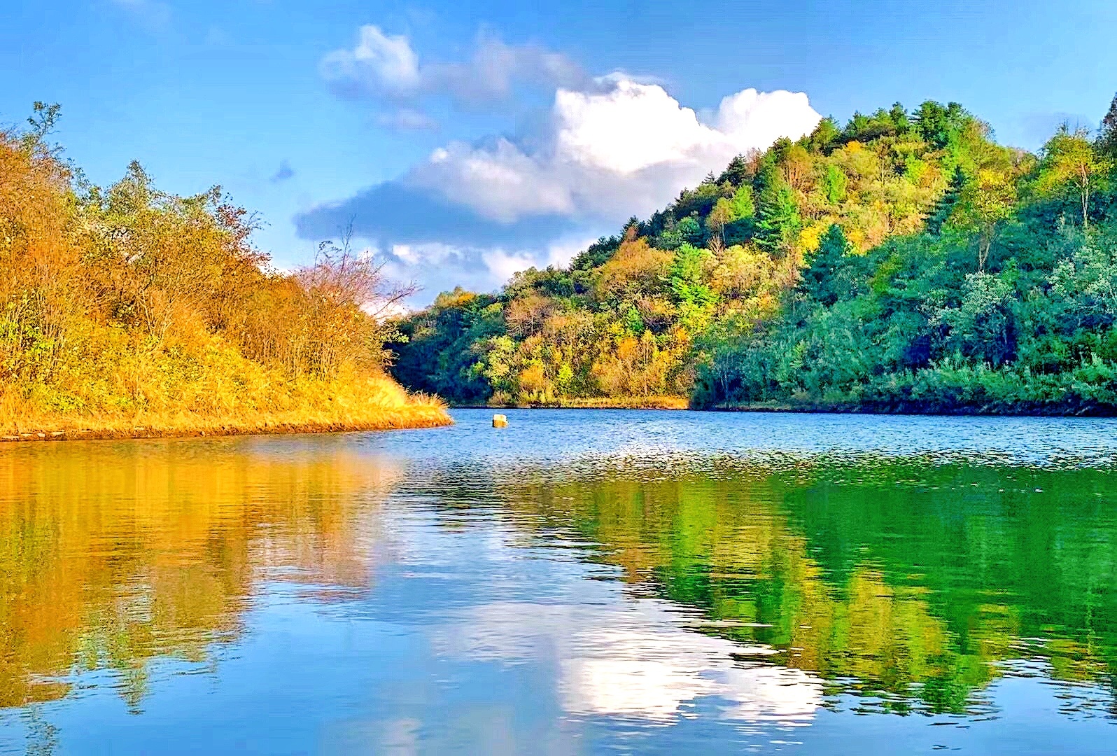 绚丽的彩叶倒映在湖面上,让人陶醉。杨晓琴 摄